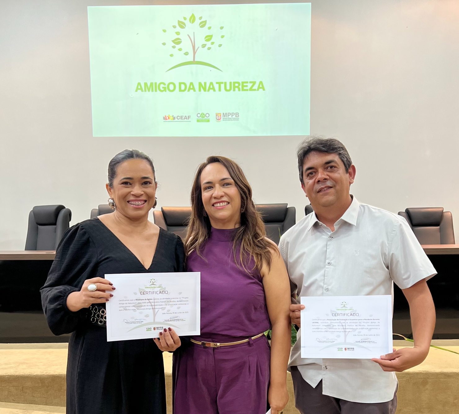 Dos 223 municípios paraibanos, 80 foram certificados, entre estes o município de Belém. A secretária de Meio Ambiente do município, Dra Verônica Lins esteve na solenidade representando o município, e recebeu a certificação das mãos da promotora Danielle Lucena da Costa Rocha.