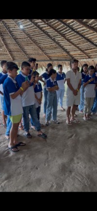 A turma do 7° ano do ensino fundamental desenvolveu durante o mês de abril o projeto sobre povos indígenas na disciplina de História com a professora Betânea Barros. A aula de campo foi a culminância desse projeto, como forma de aproximar os estudantes da realidade indígena.
