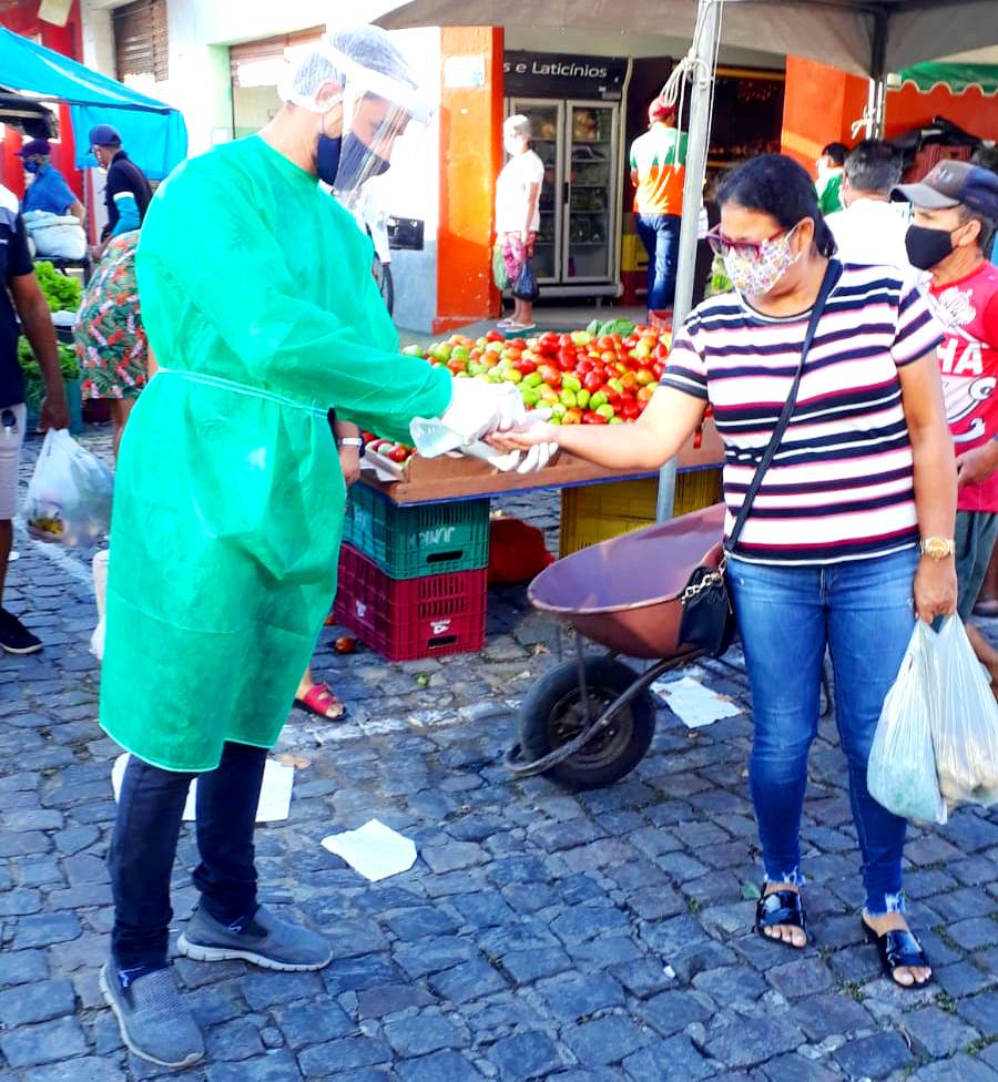 Já no espaço da feira livre, as equipes fiscalizaram as bancas e apoiaram os feirantes e clientes com higienização das mãos com álcool líquido e gel a 70%, e orientações nos lavatórios móveis instalados pela Prefeitura para o uso da população na feira e nos locais de recebimento do Auxílio Emergencial e dos programas sociais como o Bolsa Família.