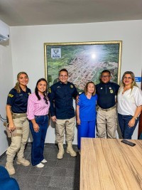A parceria foi firmada em uma reunião no Gabinete da gestora Aline Barbosa com os representantes da Polícia Rodoviária Federal, juntamente com as secretárias Hyldemária Barbosa (educação) e Renata Lima (Mobilidade Urbana).