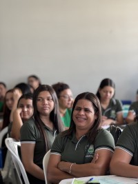 O encontro reuniu cuidadores escolares, professores do Atendimento Educacional Especializado (AEE), gerentes pedagógicos, equipe psicossocial e visitadores do programa “Criança Feliz”, que participaram de uma programação voltada à troca de saberes e à construção de estratégias para o acolhimento e o acompanhamento de crianças e estudantes com deficiência.