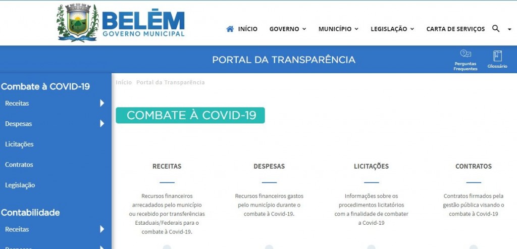 A Prefeitura de Belém disponibiliza no Portal da Transparência do município informações específicas sobre gastos, licitações, contratos, legislação e demais informações pertinentes ao combate à Covid-19, prezando pela transparência dos atos administrativos.