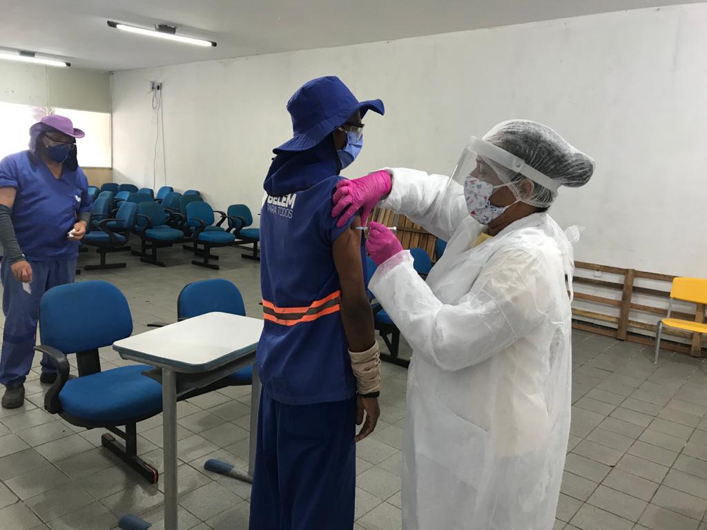 A Prefeitura de Belém, por meio da Secretaria Municipal de Saúde, está imunizando contra a Influenza/H1N1 todos os Agentes de Limpeza Pública que realizam os serviços na cidade de Belém e no distrito de Rua Nova.