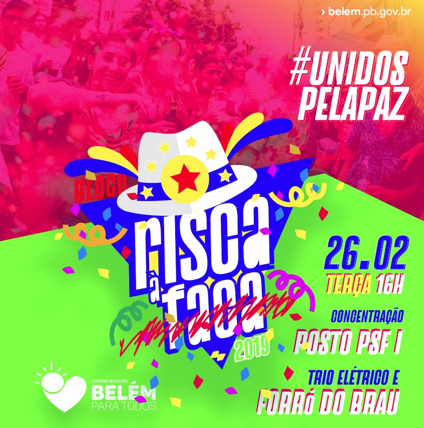 Com o tema “Unidos pela Paz”, o tradicional bloco pré-carnavalesco Risca Faca, da cidade de Belém, sairá no próximo dia 26 de fevereiro, com a concentração a partir das 16 horas em frente ao PSF I, no Bairro da Luz (Conjunto Manoel Matias). O bloco será animado pelo Forró do Brau e trio elétrico.