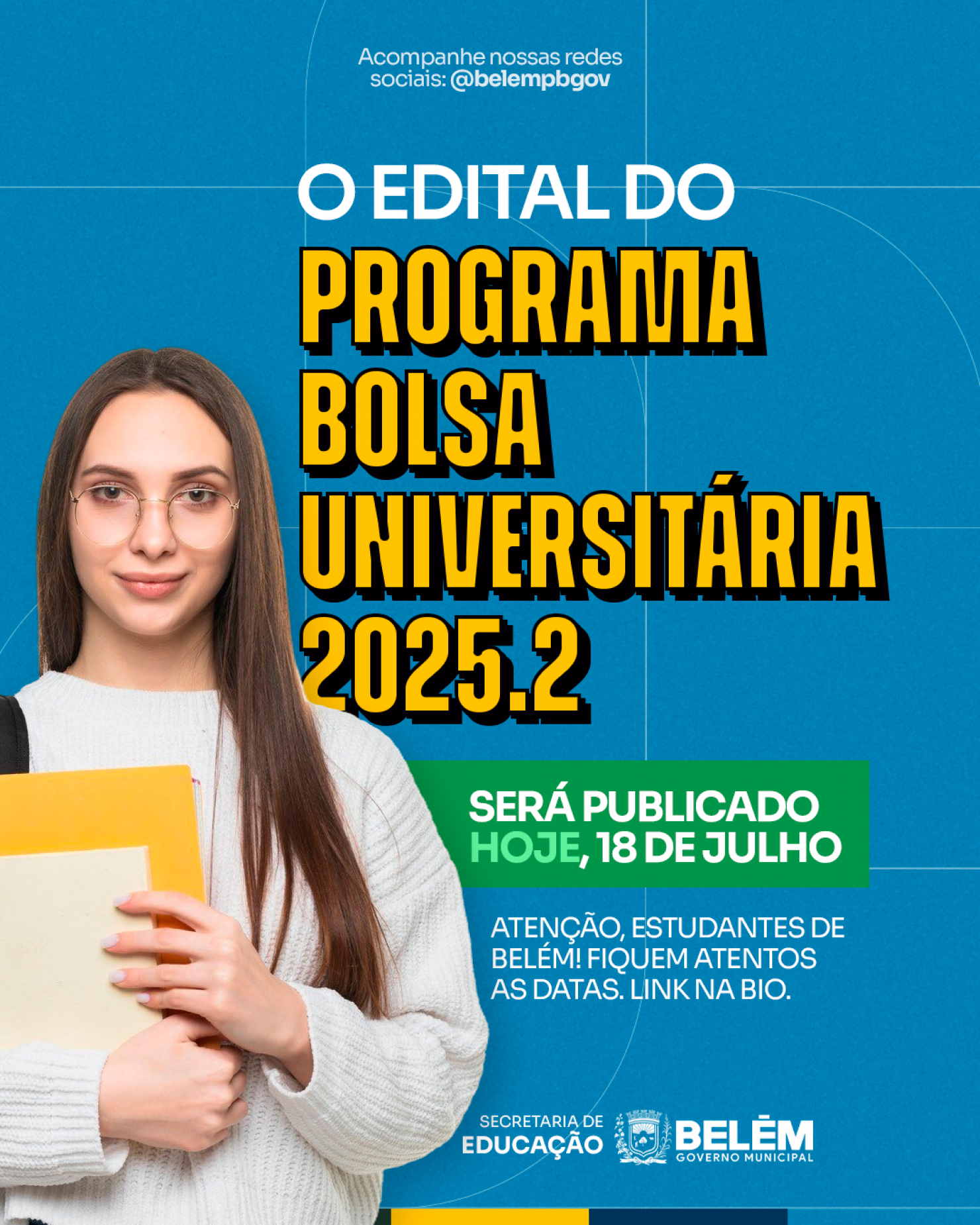 O edital 2025.2 do Programa Bolsa Universitária foi publicado nesta sexta-feira (18) no Diário Oficial do Município.